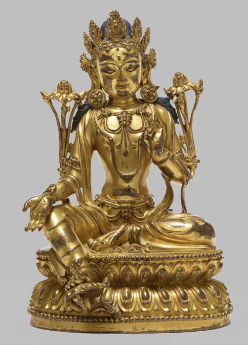 Grüne Tara China, Ming-Dynastie, Yongle-Periode (1403–1424), feuervergoldete Messinglegierung © Museum Rietberg, Legat Martha und Ursula Wirz
