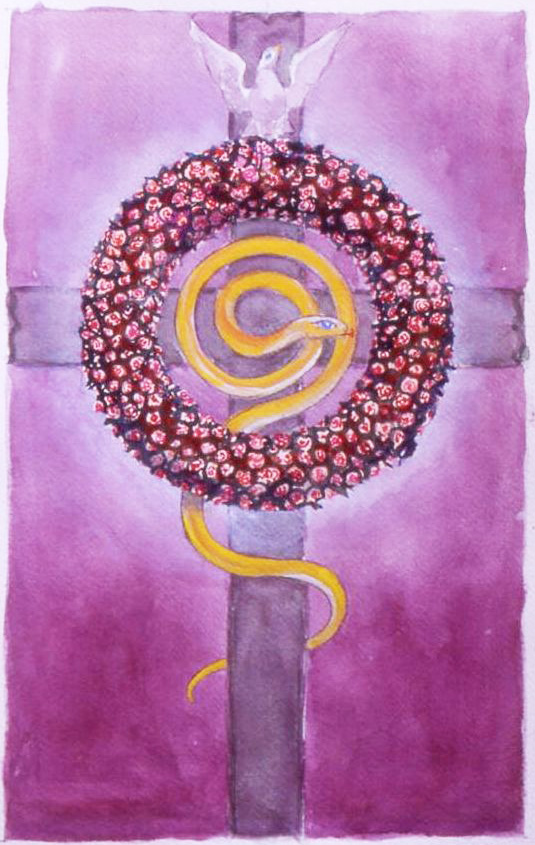 of Light This experience was almost impossible to paint, and I therefore used the ancient symbol of the Uraeus to convey my impression. (In most references the ‘Uraeus’ means the sacred cobra on Egyptian royal head-dresses etc. – only a minority of sources seem to take it to mean the ‘sun wing’ symbol.) |